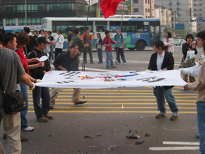 당시 전학투위는 위 사진을 촬영해 이라크 파병반대 선전 등을 위해 사용했다.