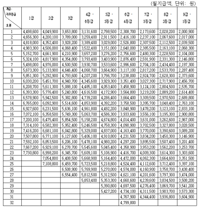 2025년 공무원 봉급표