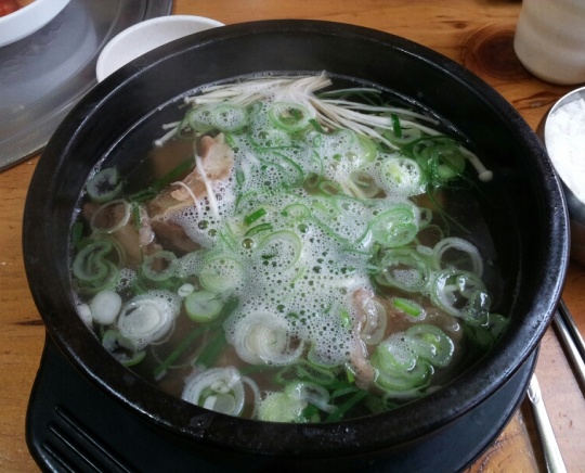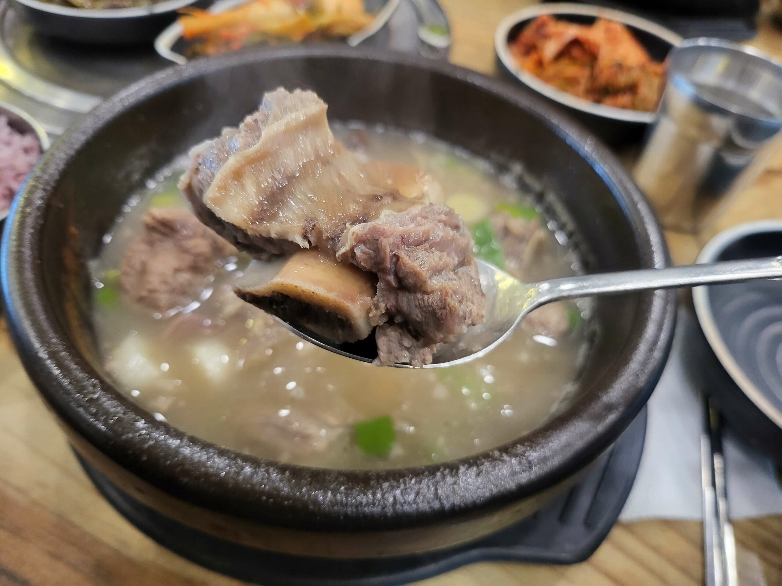 큼직큼직한 갈비가 넉넉하게 들어있는 탕은 진한 국물이 인상적이에요.