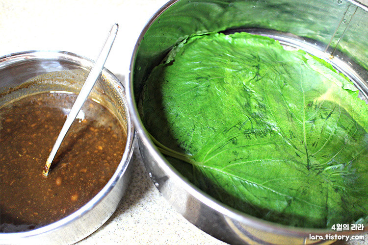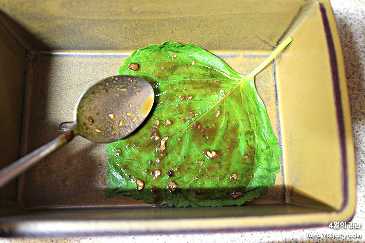 이제 깻잎에 된장양념을 발라줄 거에요.