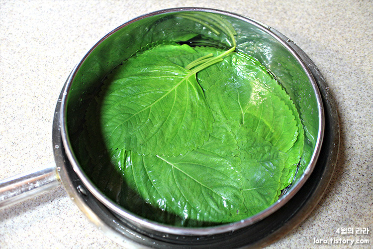소금물에 30분 담가 깻잎을 삭혀 줍니다.