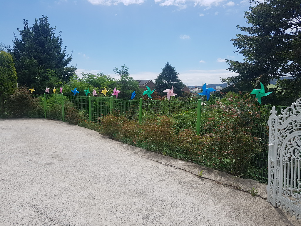 즐거운어린이집 마당에 바람개비가 돌아가네요