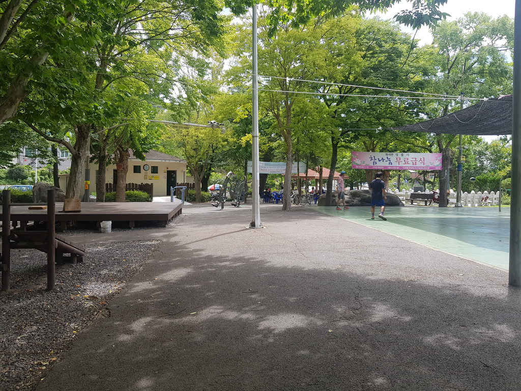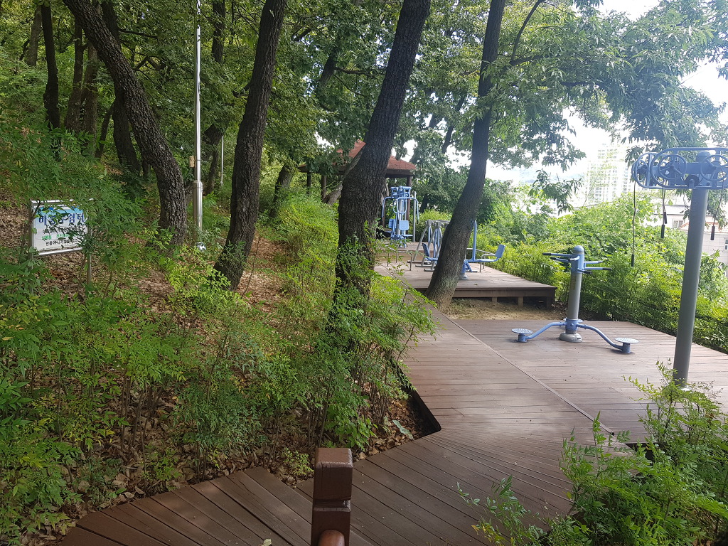 운동시설을 많이 갖다 놓아서 여기에서 운동하고 놀다가 가면 좋겠네요 화장실도 있고