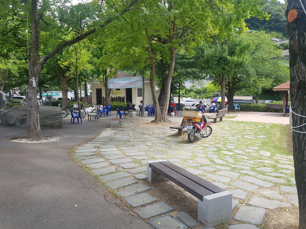 공원에 의자를 많이 갖다 놓아서 앉아 놀기가 참 좋습니다