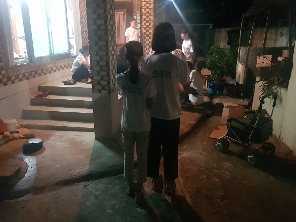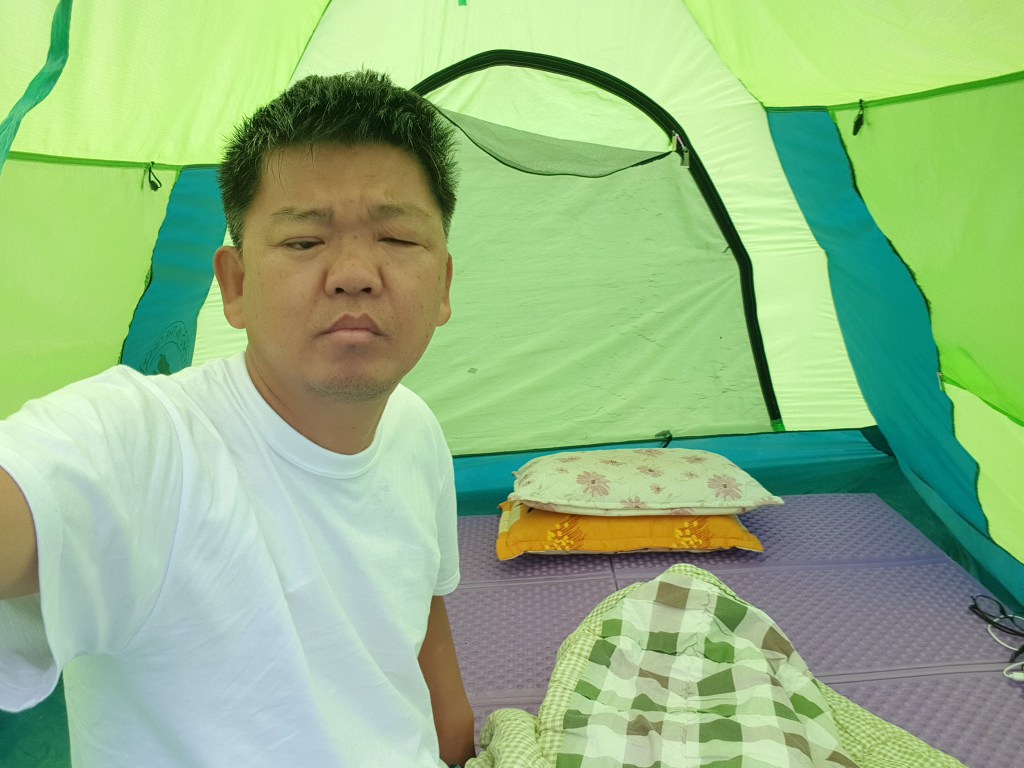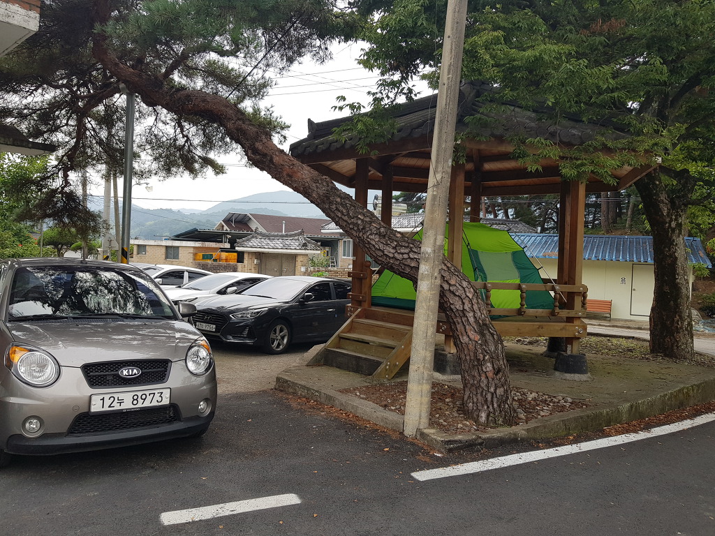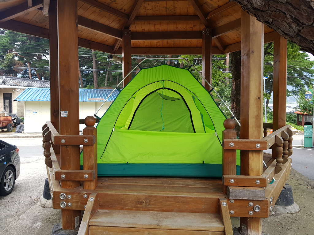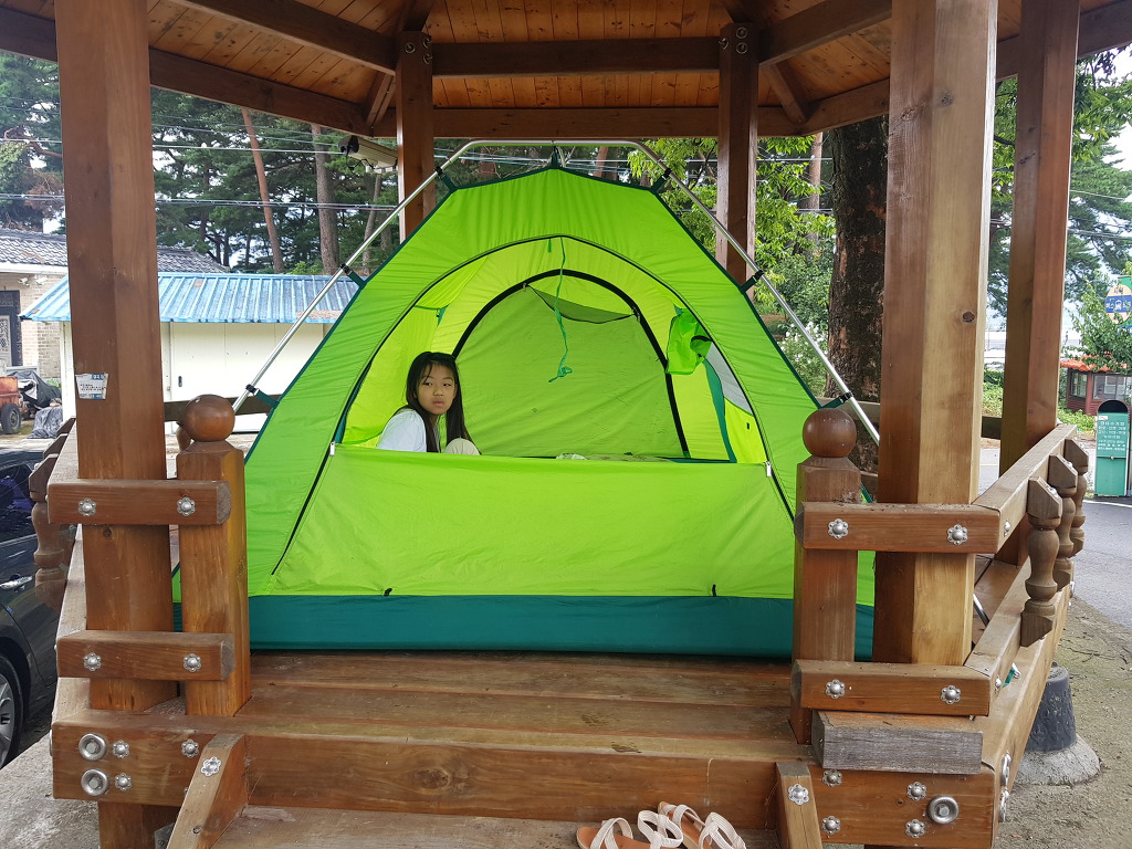 비가 조금씩 내려서 옥상에 텐트는 여기 정자로 이동