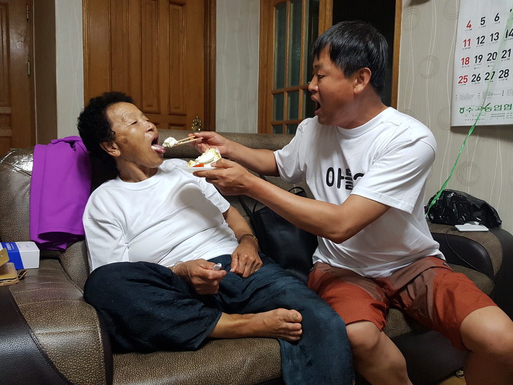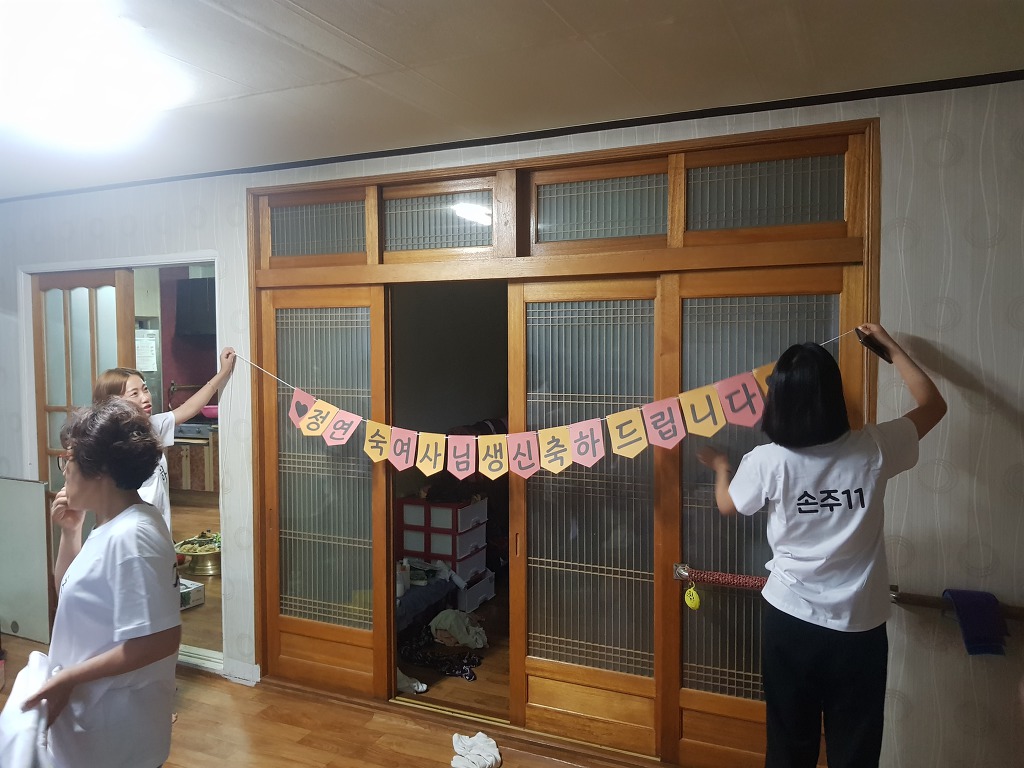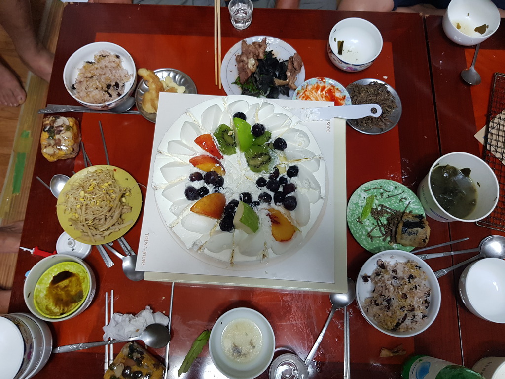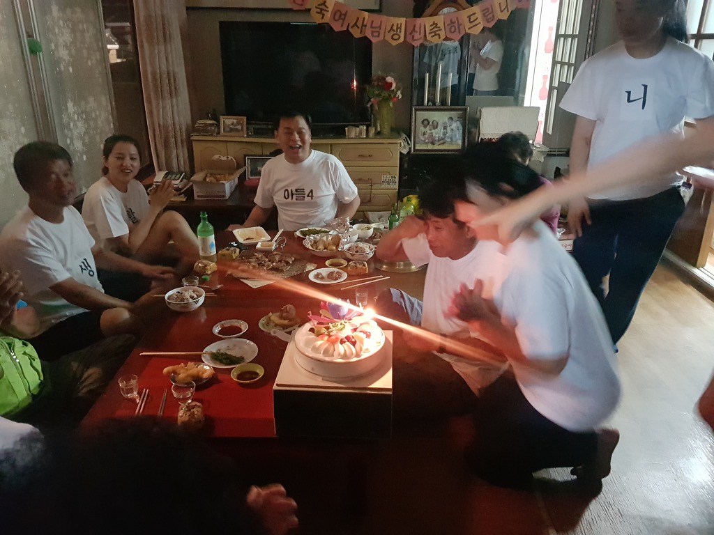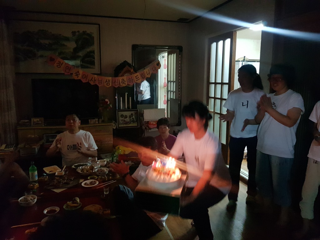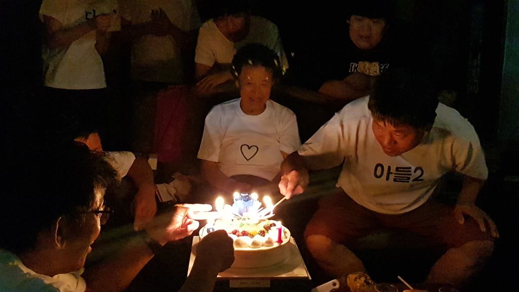 촛불을 커고 들고 오는데 선풍기 앞에 케이크를 놓으면 어찌 합니까