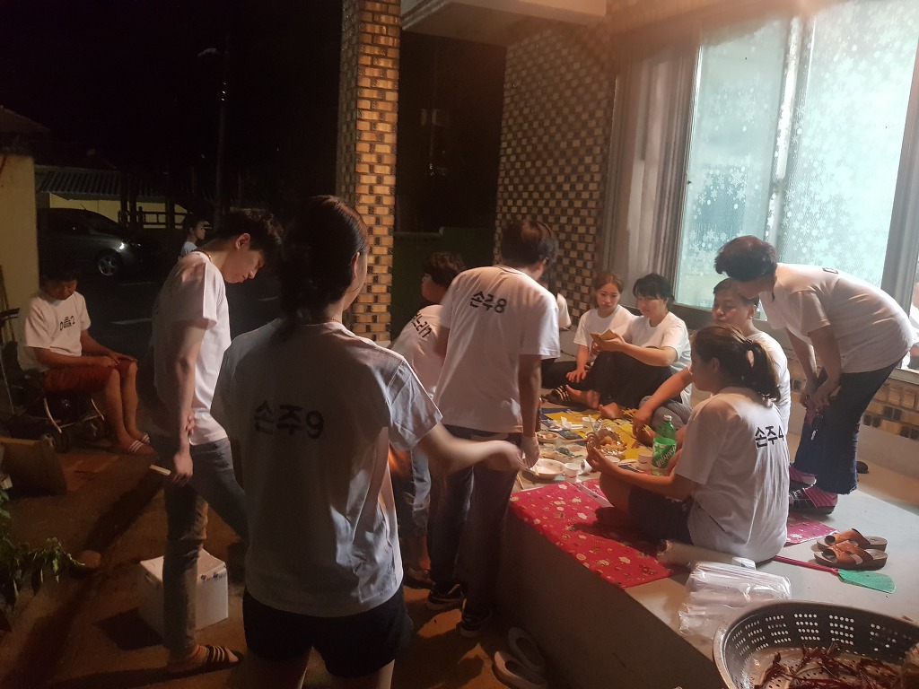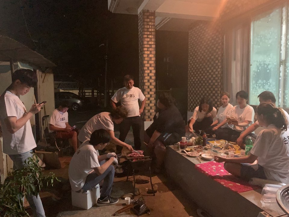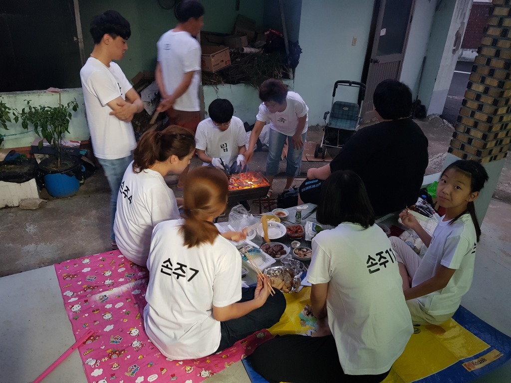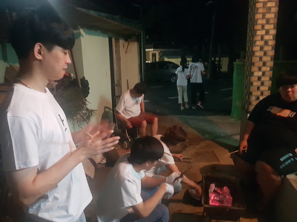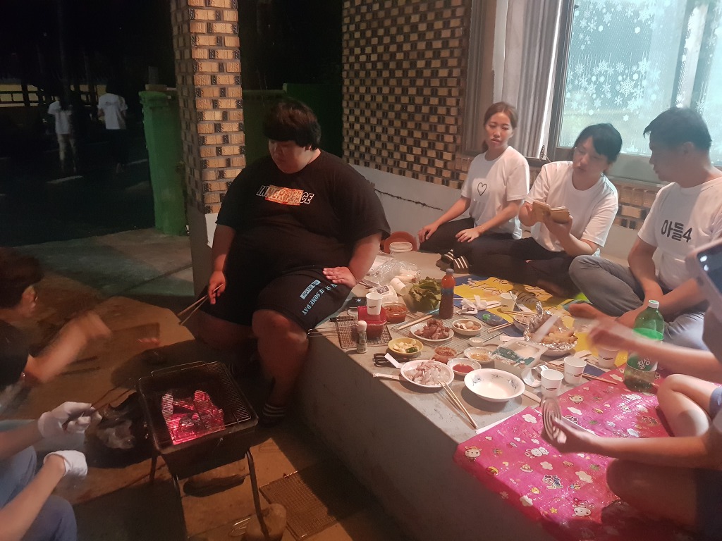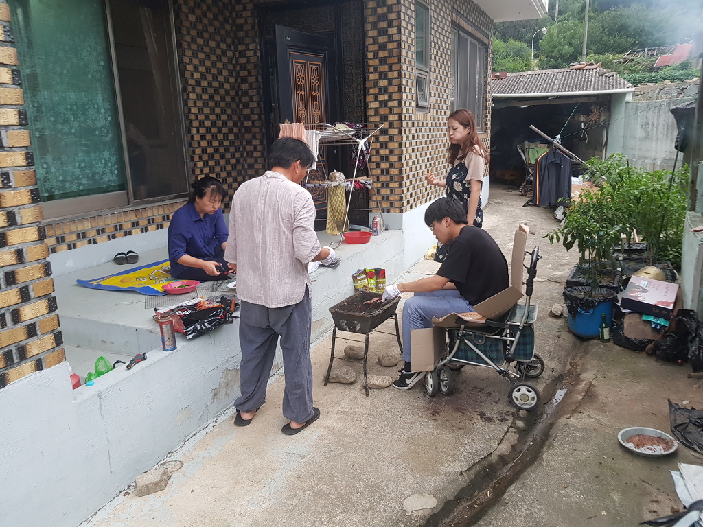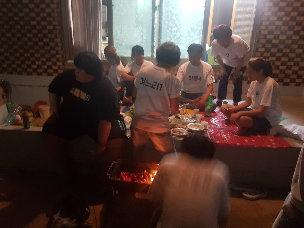 오후 5시 누나식구가 도착하면서 바베큐가 시작됩니다
