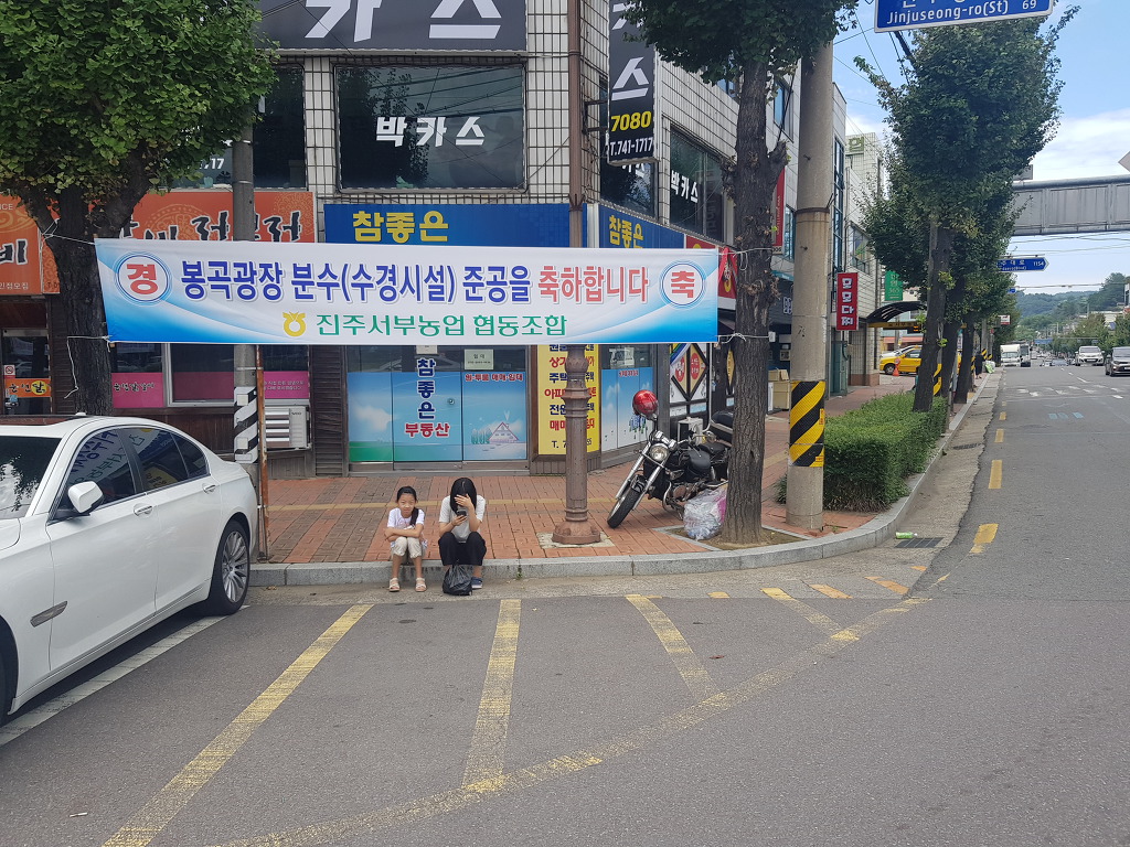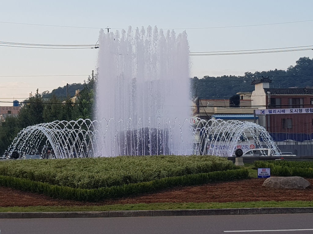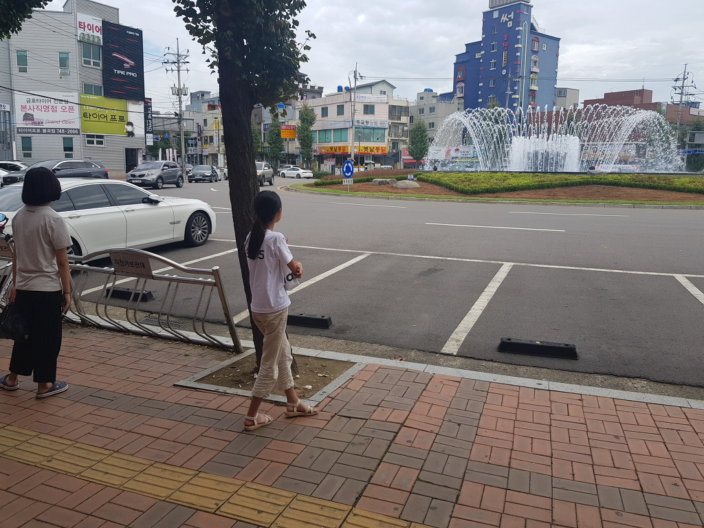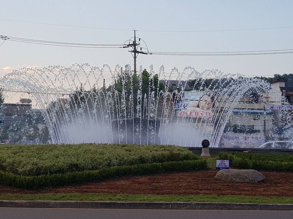 우리는 봉곡광장 분수대 나오는거 구경하고