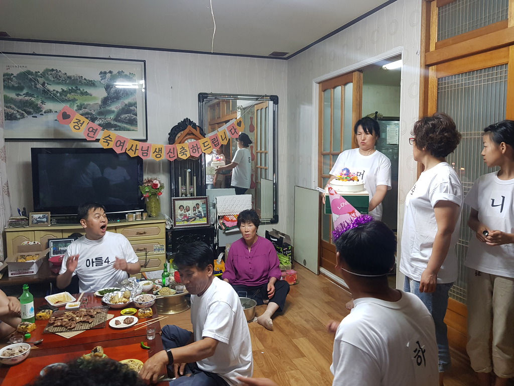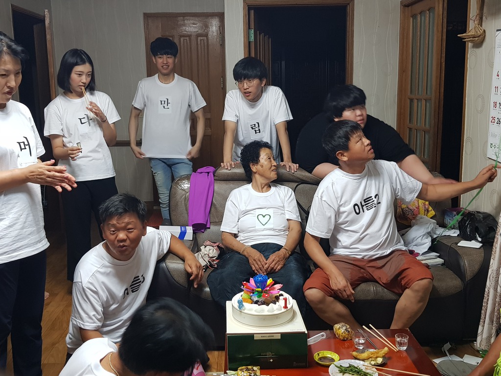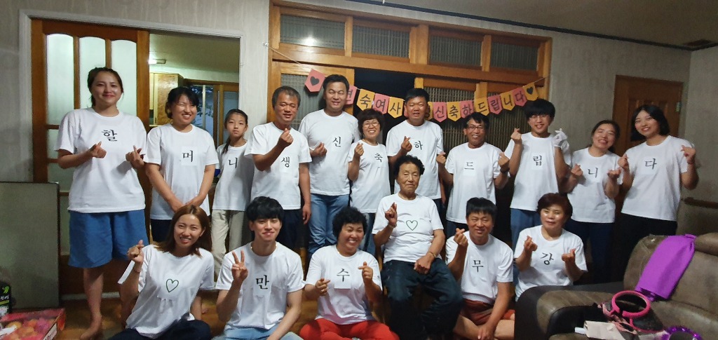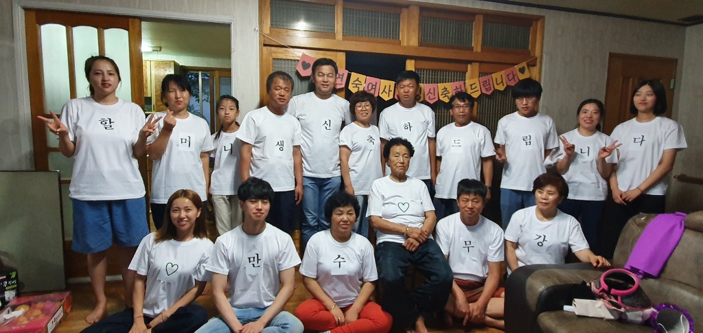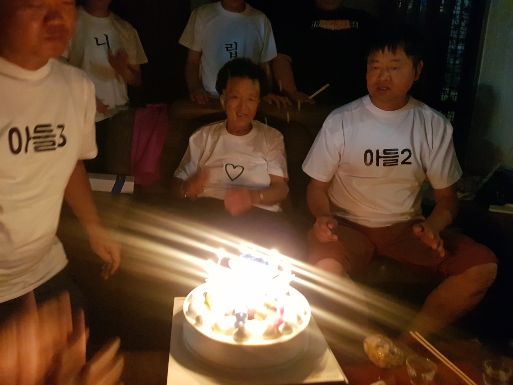 어머니생신 참석 19명 사진에는 광재랑 조금 늦게 도착한 유진이가 빠졌고 불참은 아들1번집에 3명 딸집에 1명 아들4번집에 4명