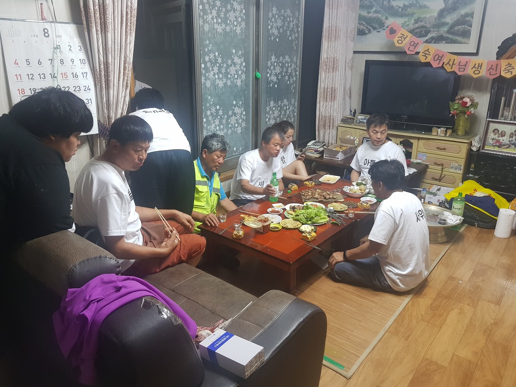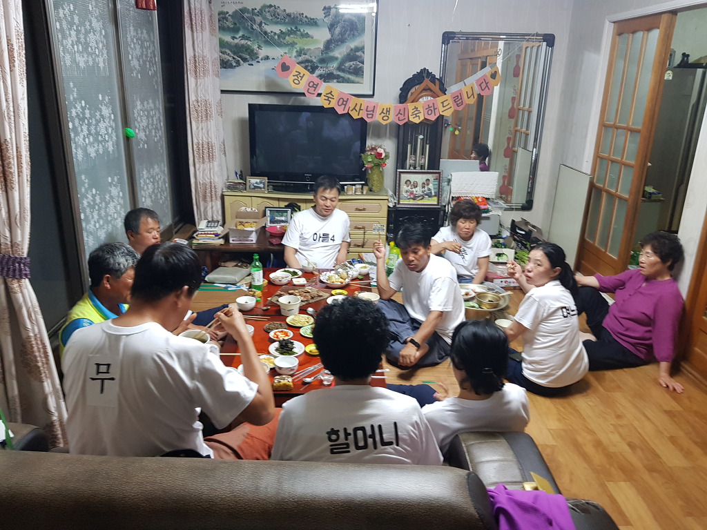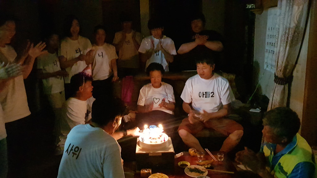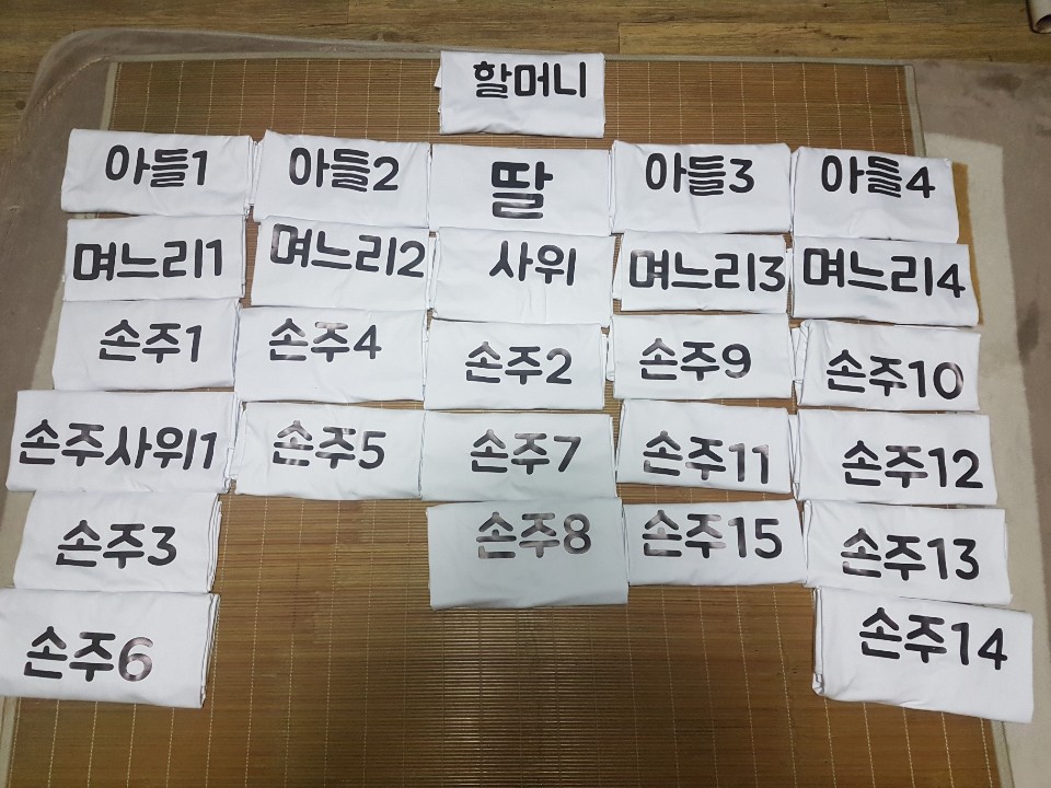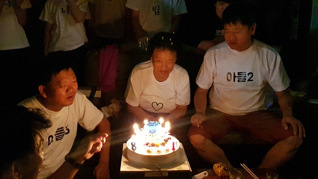 어머니생신 참석 19명 사진에는 광재랑 조금 늦게 도착한 유진이가 빠졌고 불참은 아들1번집에 3명 딸집에 1명 아들4번집에 4명