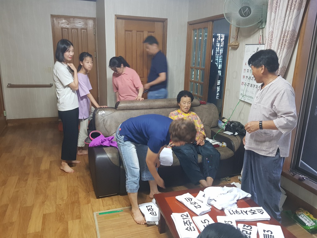드디어 어머니 아니 할머니 옷 입으셨네 단체사진 찍게 모두 집합