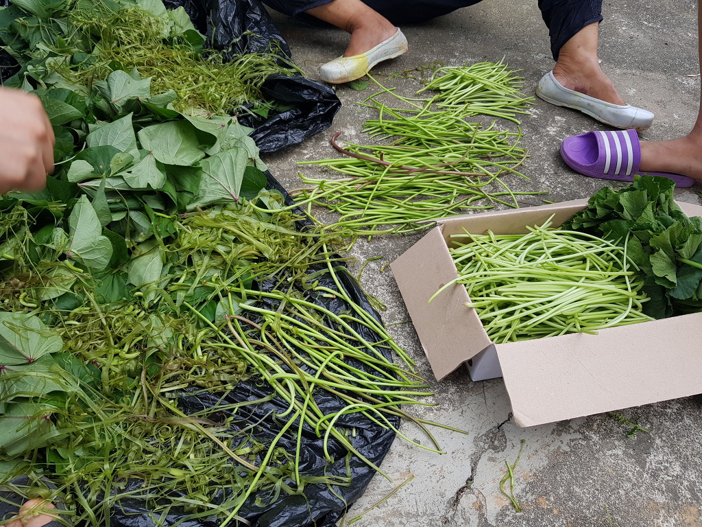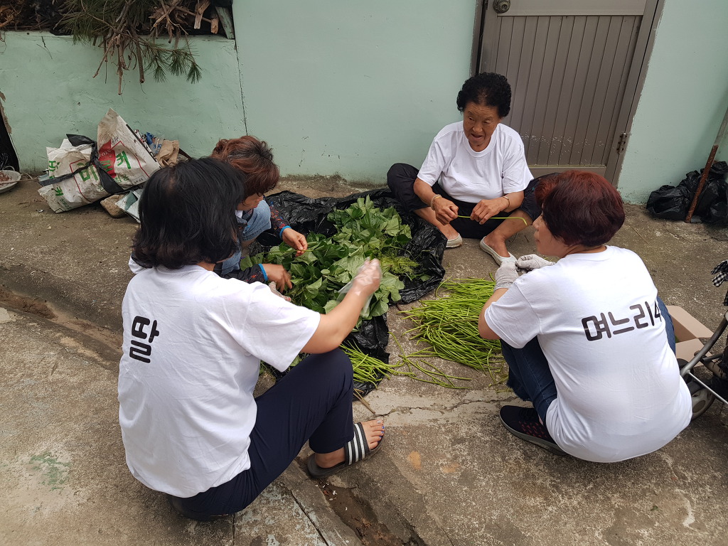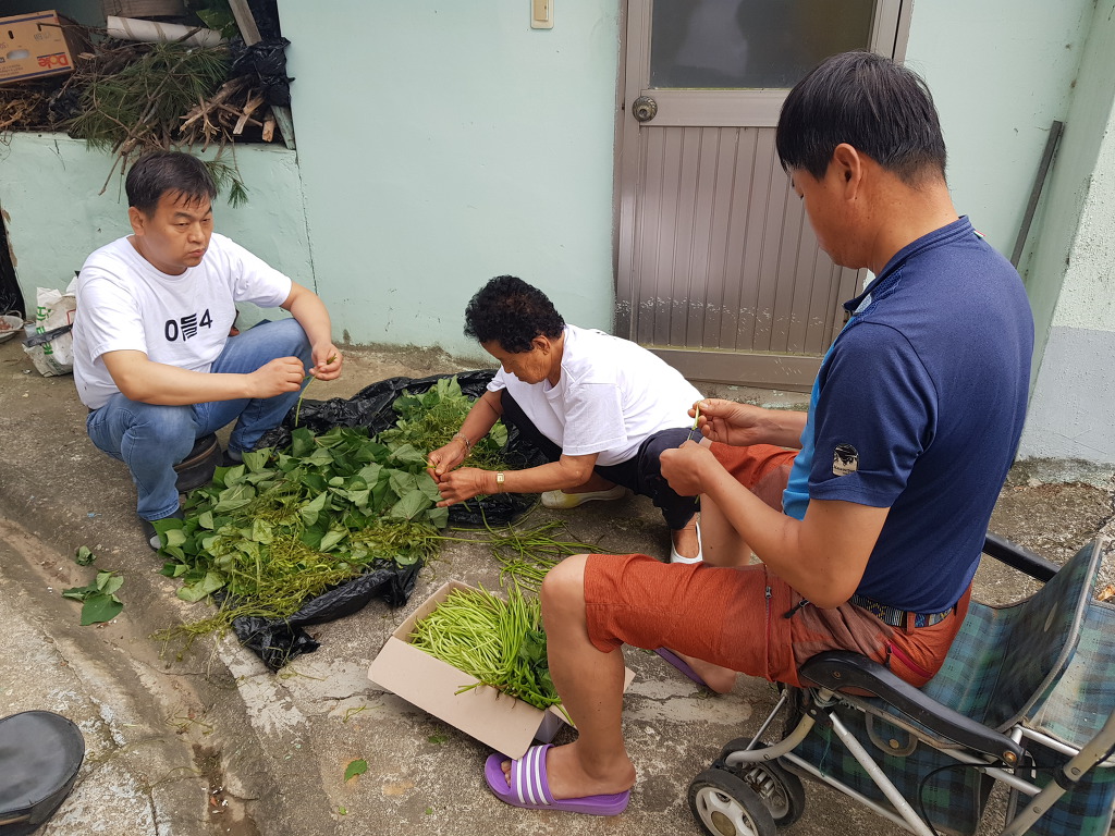 고구마줄기 껍질 까서 각자 가져 가라네요