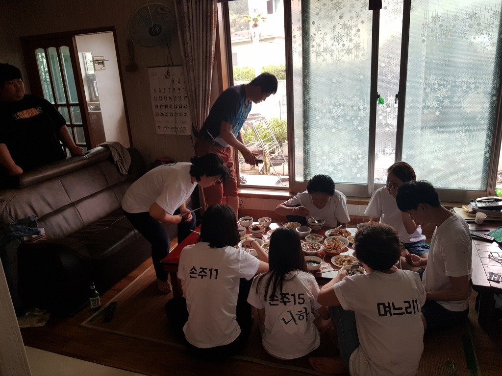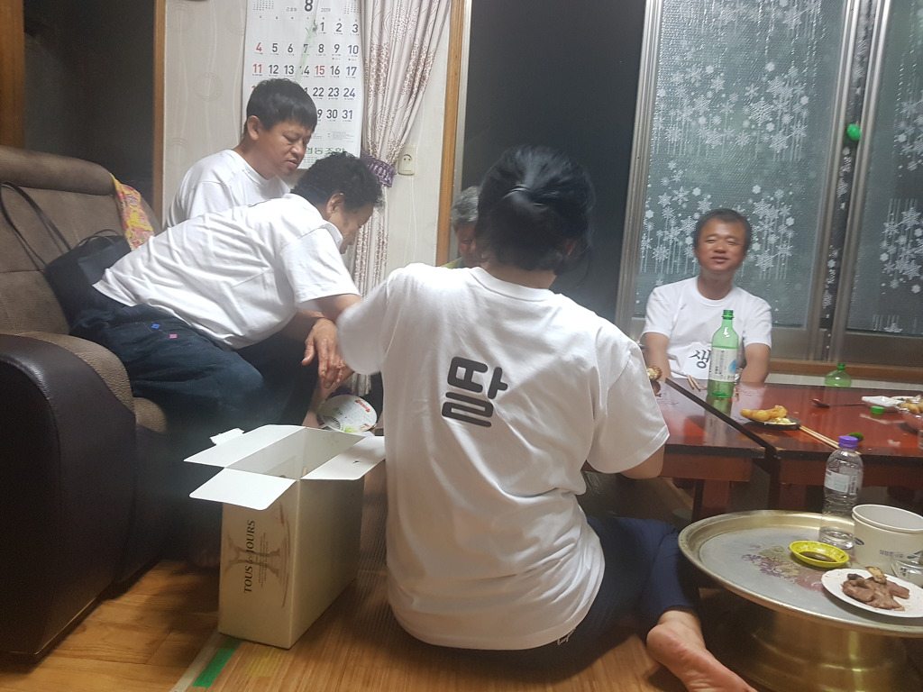 사정상 식당 운영을 하지 않는다고 하여 취소를 하고 어머니 집에 모두 모이는 것으로 했습니다