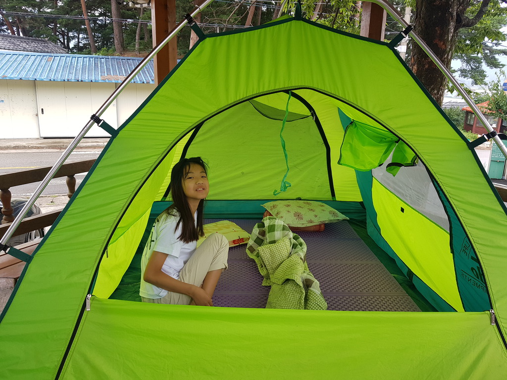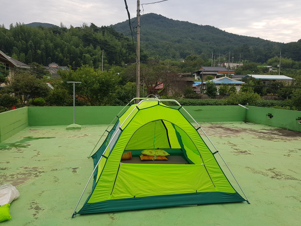 옥상에 있는 텐트에 한번 들어 가 볼까