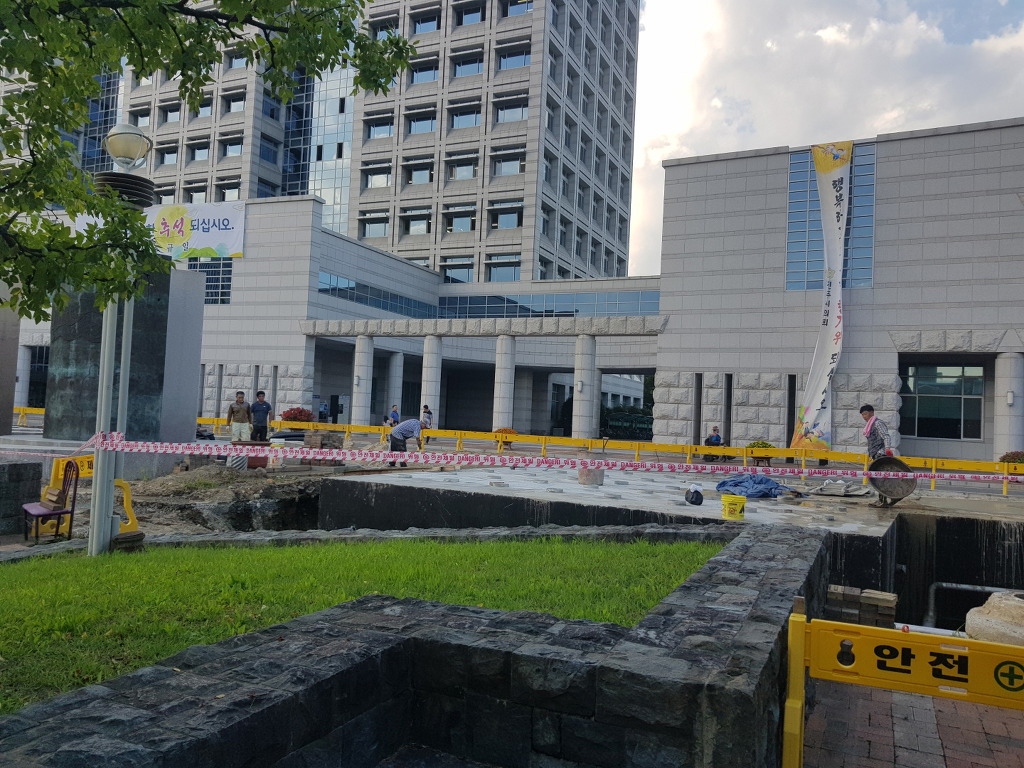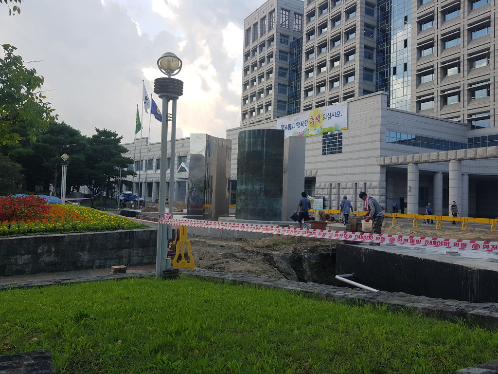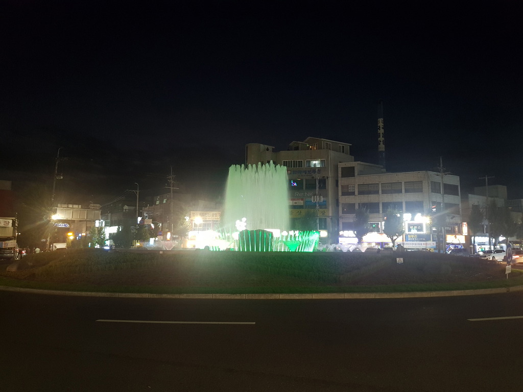 장례식장 갔다가 오는 길에 봉곡광장에 야간 조명보이는 분수 스케치