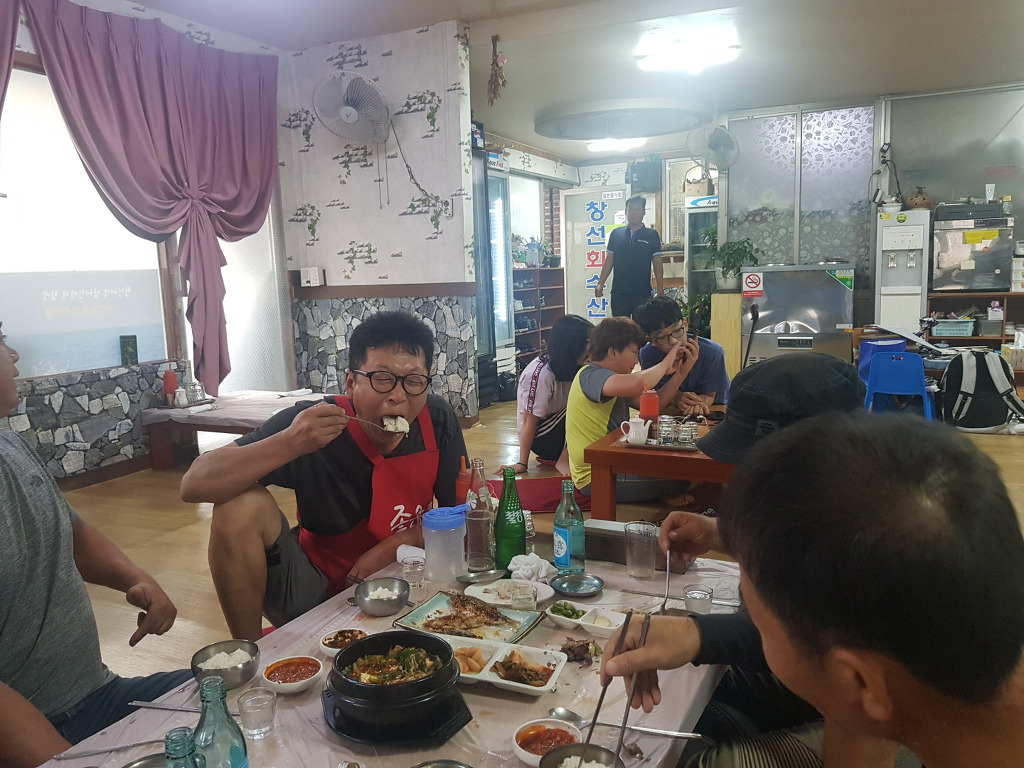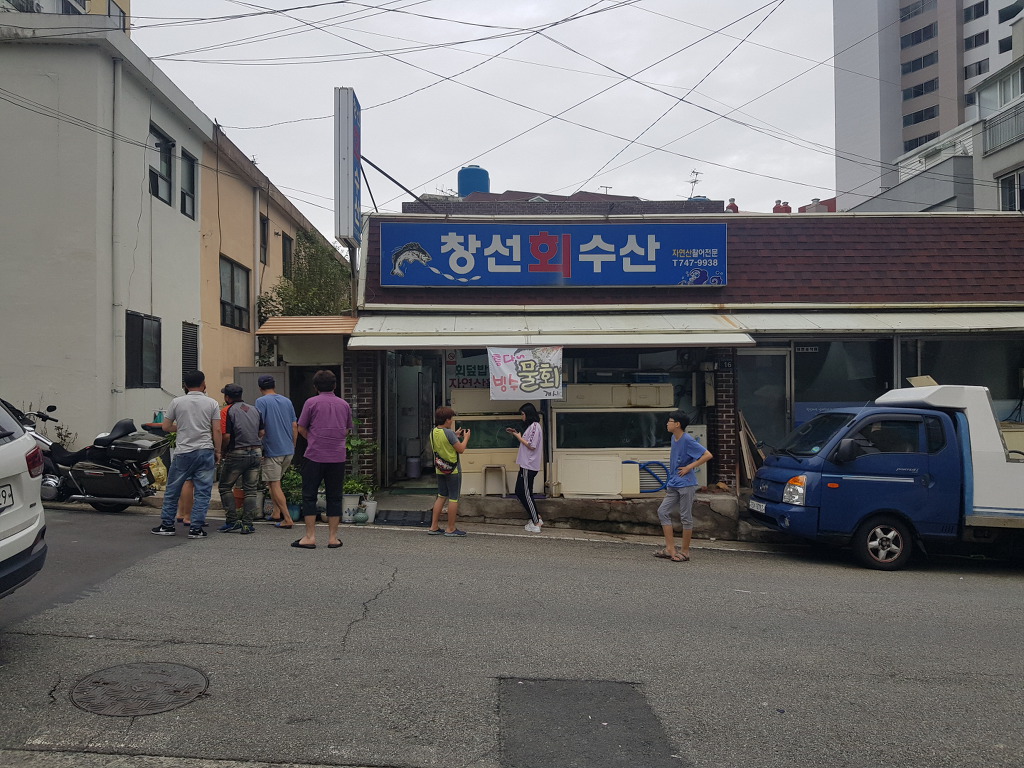 경철이가 아파트오 와서 차 타고 같이 창선횟집으로