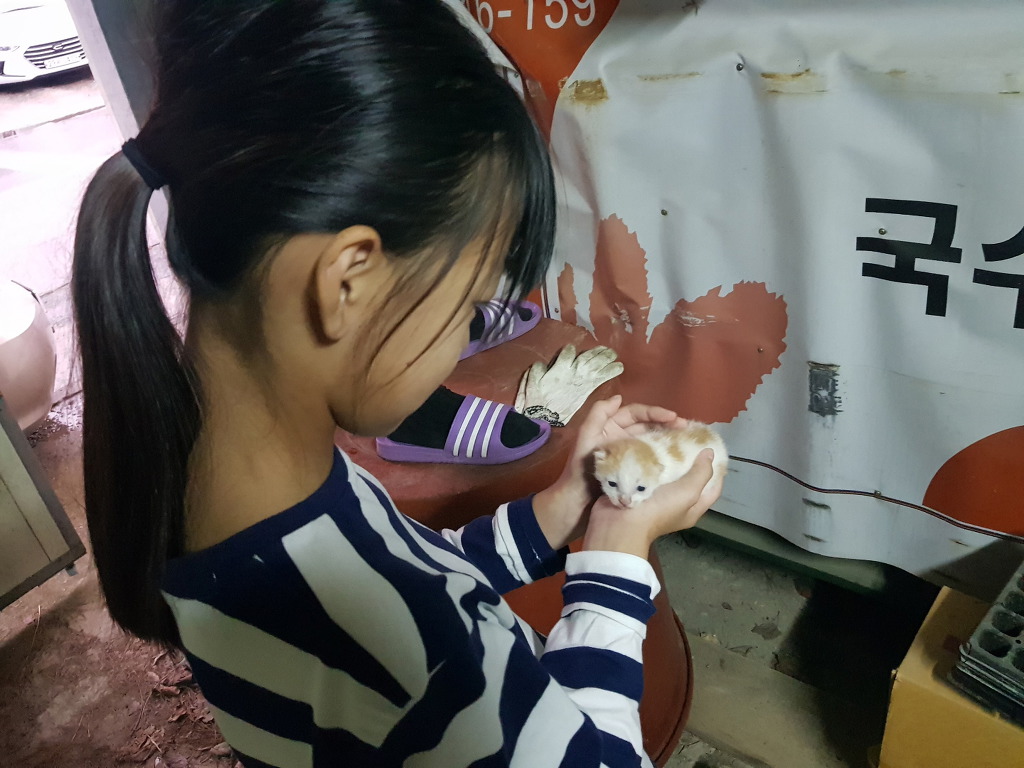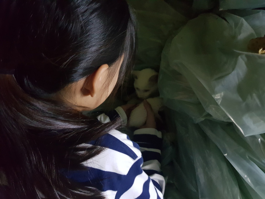 살짝 고양이 새끼 보러 온 두사람 야 안된다 새끼 물고 자리 옮긴다고 귀찮게 하면