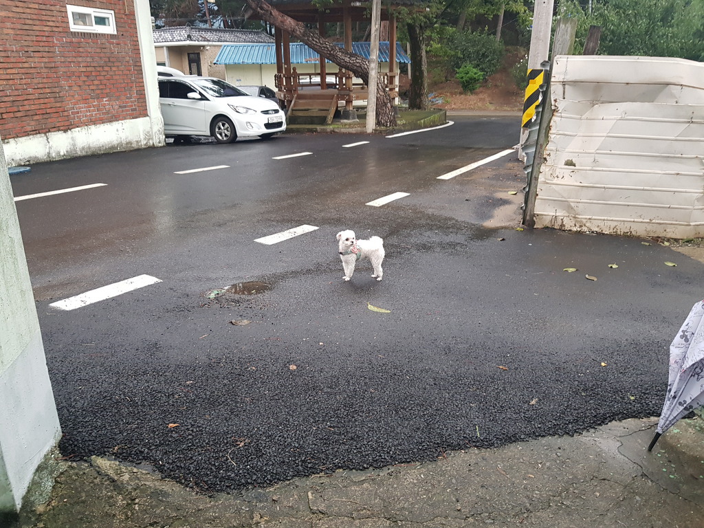 생강이가 우리를 보고 멍멍 멍멍 멍멍 대기 짖네 그래도 집에 까지 무사히 도착