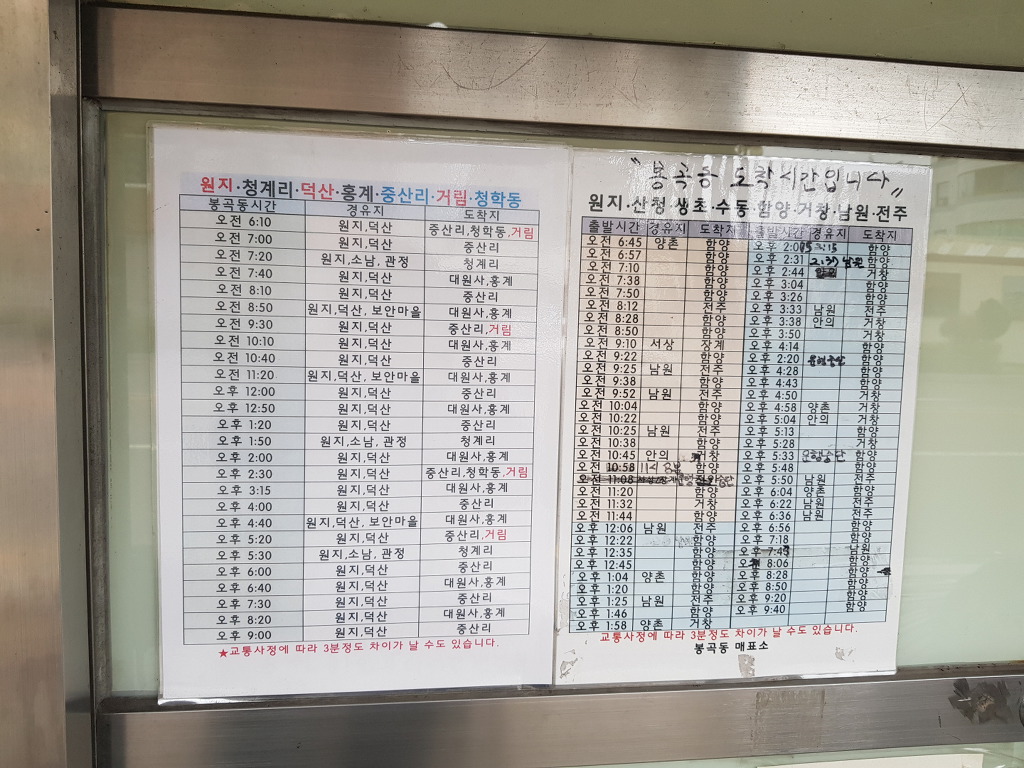칠정으로 가는 시외버스 타고 들어가자고 하여 봉곡시외버스정류장 4시 40분 버스