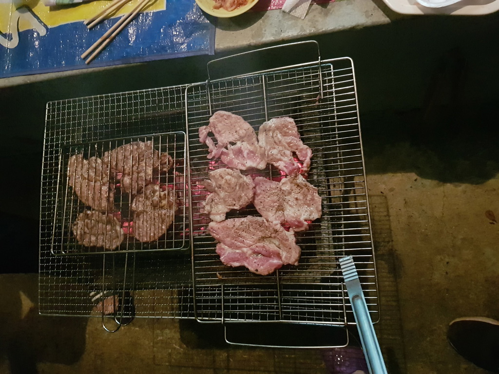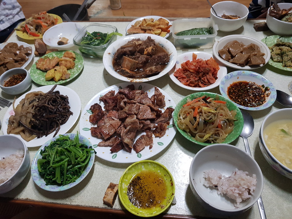 돼지고기 구운거에 돼지갈비까지 저녁밥상 푸짐하네요