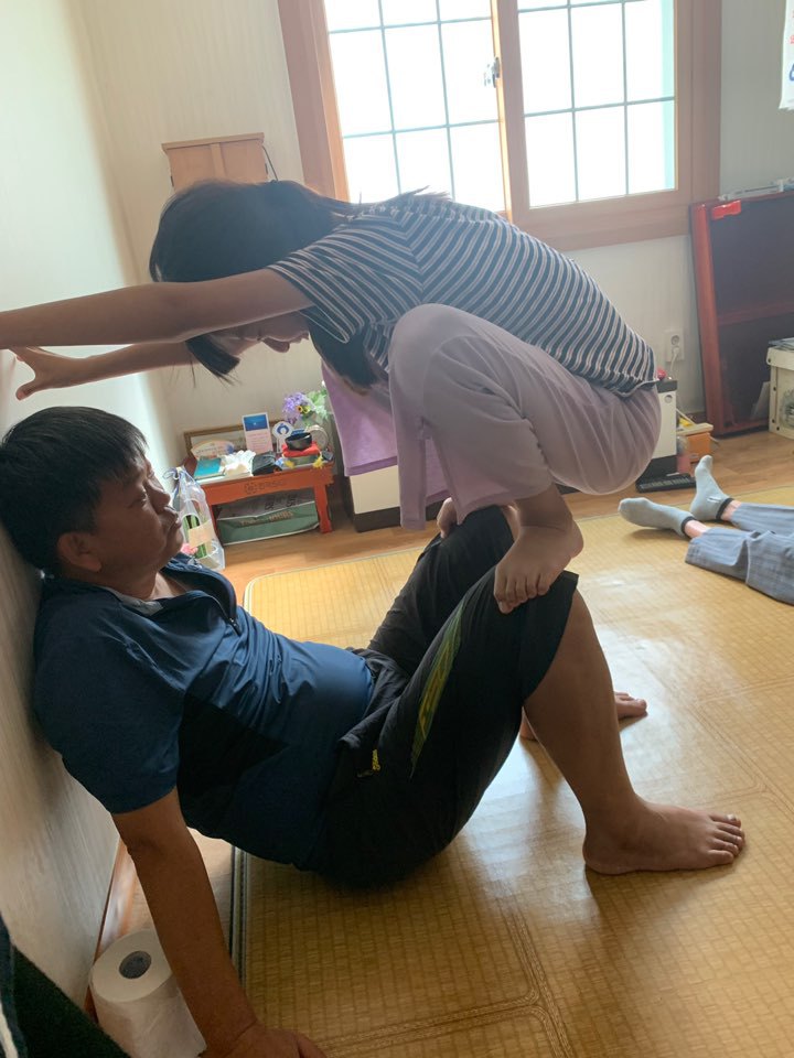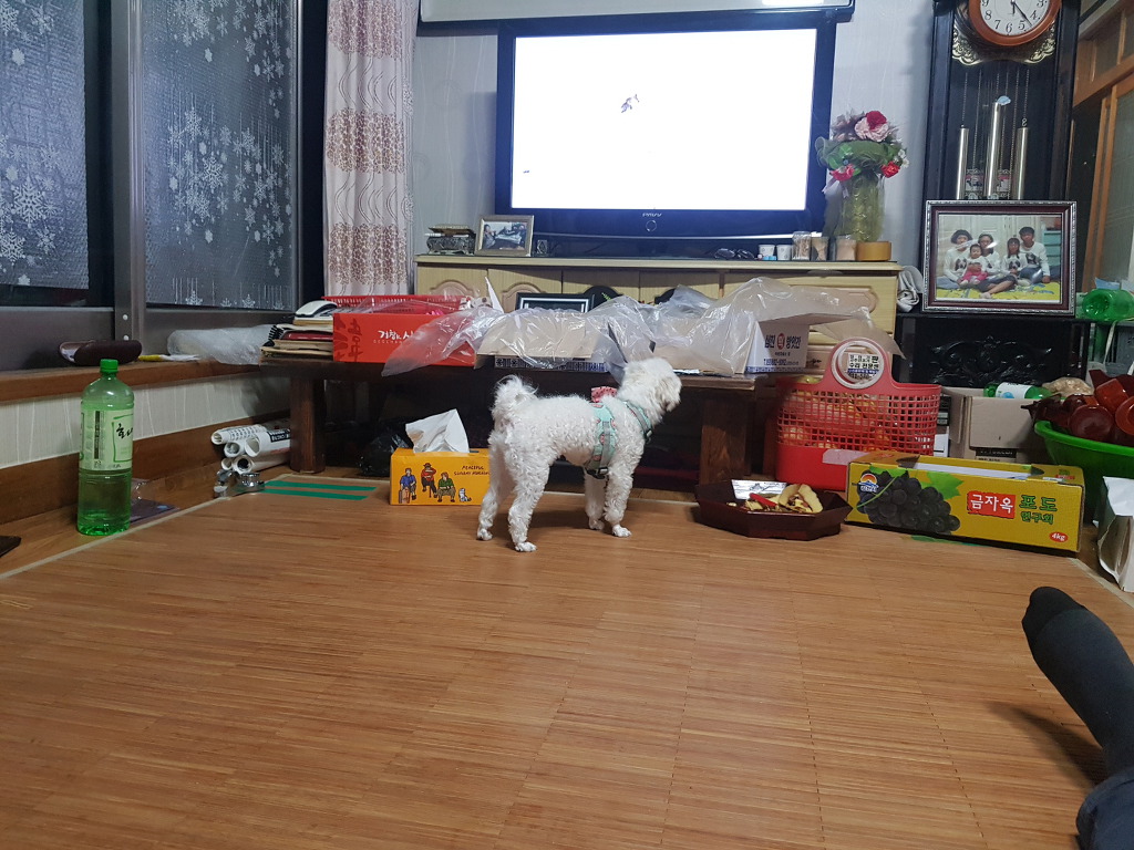 생강이는 맨발로 밖에 나오면 안되는데 이래 가지고 방에 또 돌아 다닐것 같은데