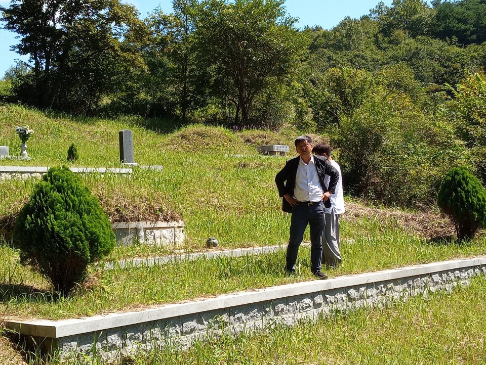 사다리 논 위에 잘 조성된 묘 누구 묘인지
