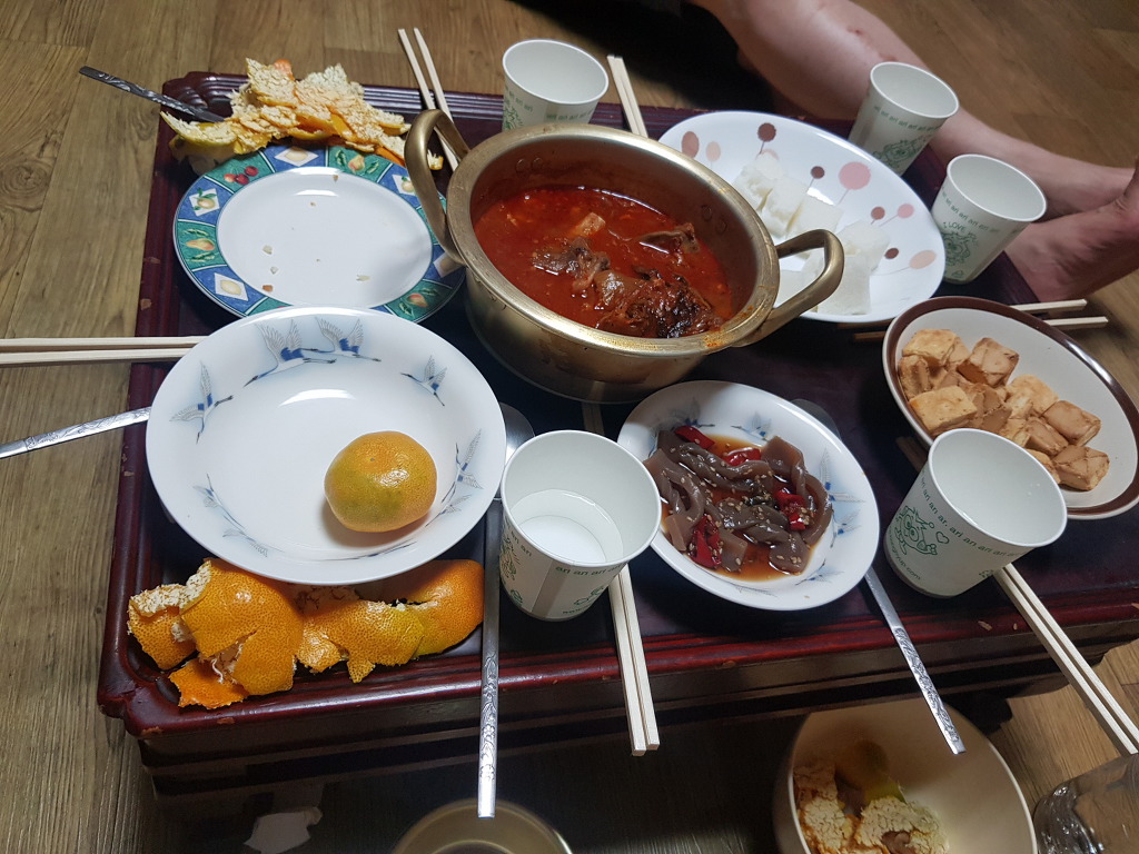 밤에 속이 안 좋아 고생했는데 그래도 먹습니다 먹어라 먹어 술도 먹고 고기도 먹고