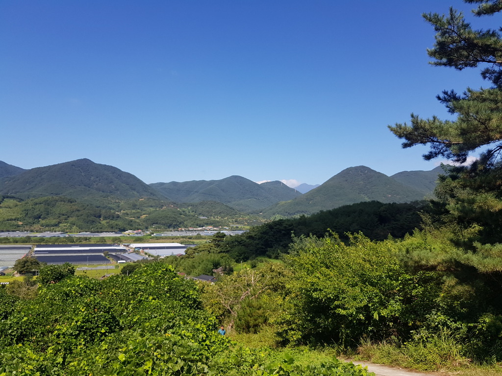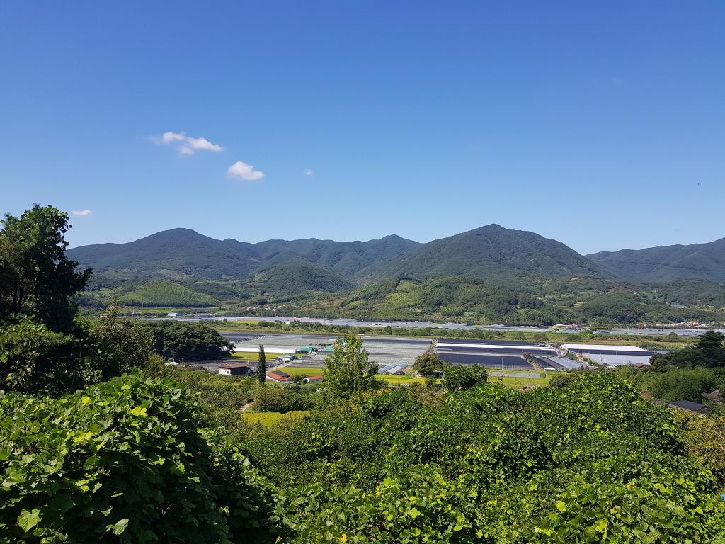 수곡면 원계리 동월마을에서 바라다 보이는 하동군 옥종면의 옥산 사림산 정개산 두방산 우방산
