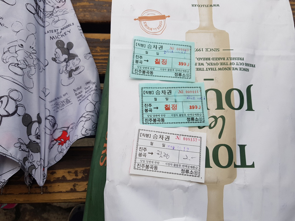 유빈이랑 세명 버스표 승차권 사서 기다립니다