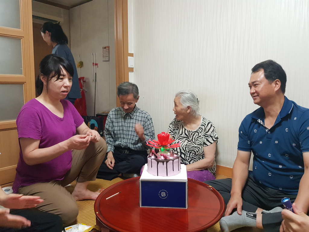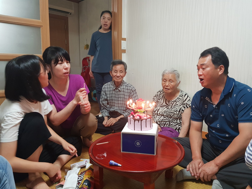 옆에 분은 노래를 좋아하셔서 같이 노래 불러 드립니다