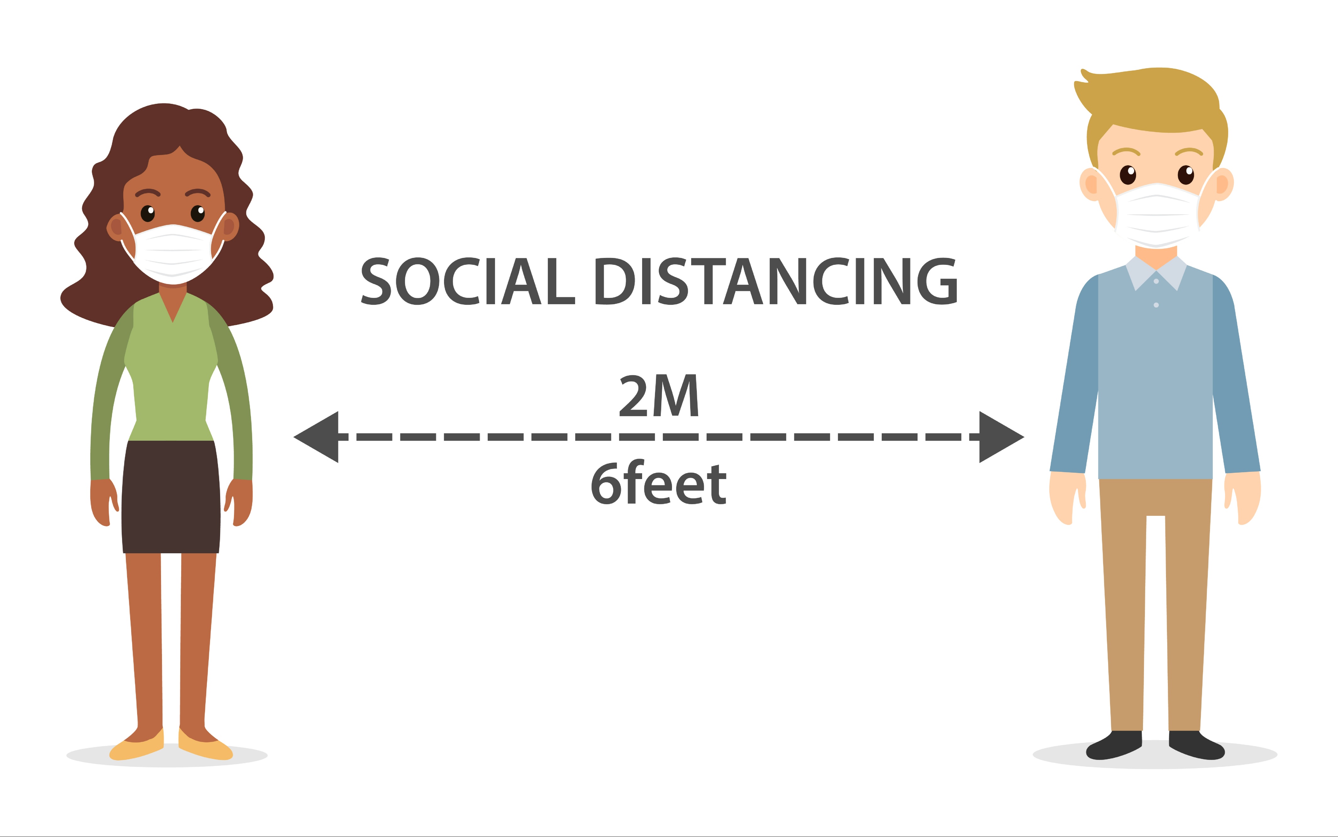 2미터 쇼셜 디스턴스 강제 지침입니다.