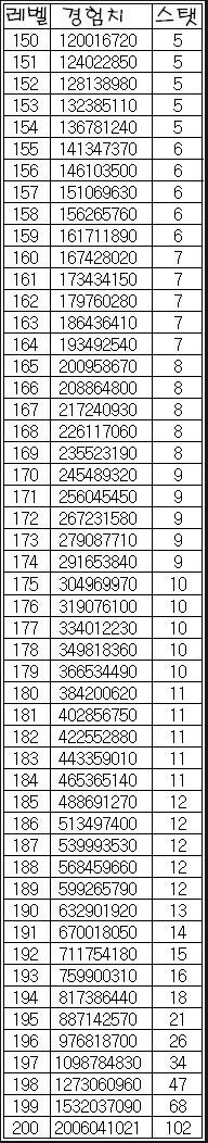 [『기타』]거상 레벨 150-200 경험치표 작성자이별교향곡|작성시간08.11.05|조회수436 목록 댓글 1 글자크기 작게가 글자크기 크게가 다음검색 현재 게시글 추가 기능 열기 북마크 공유하기 신고 센터로 신고 댓글 댓글 1 댓글쓰기 답글쓰기 댓글 리스트 작성자에리다누스 | 작성시간 08.11.05 우와... 만렙 찍을수는 있을까..? 댓글 전체보기