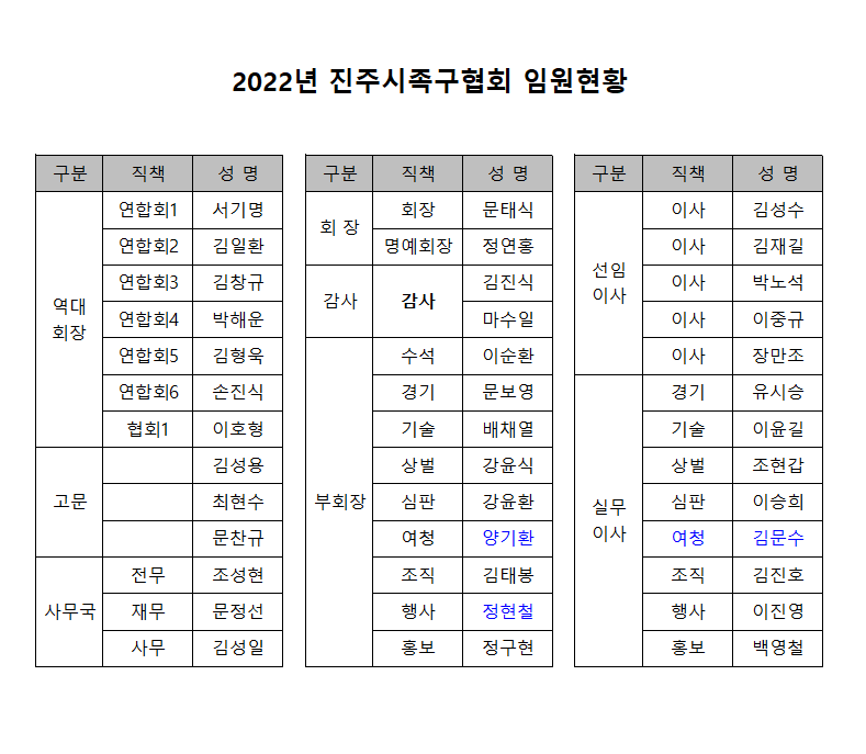 2022 임원명부 작성자진주시족구협회|작성시간22.02.18|조회수667 목록 댓글 0 글자크기 작게가 글자크기 크게가 다음검색 현재 게시글 추가 기능 열기 북마크 공유하기 신고 센터로 신고 댓글 댓글 0 댓글쓰기 답글쓰기 댓글 리스트
