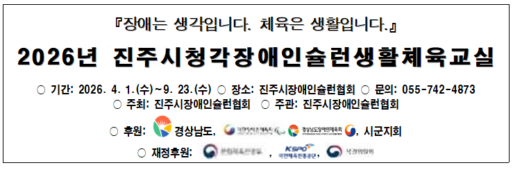 2026년 진주시청각장애인 슐런생활체육교실 운영 안내 드립니다.