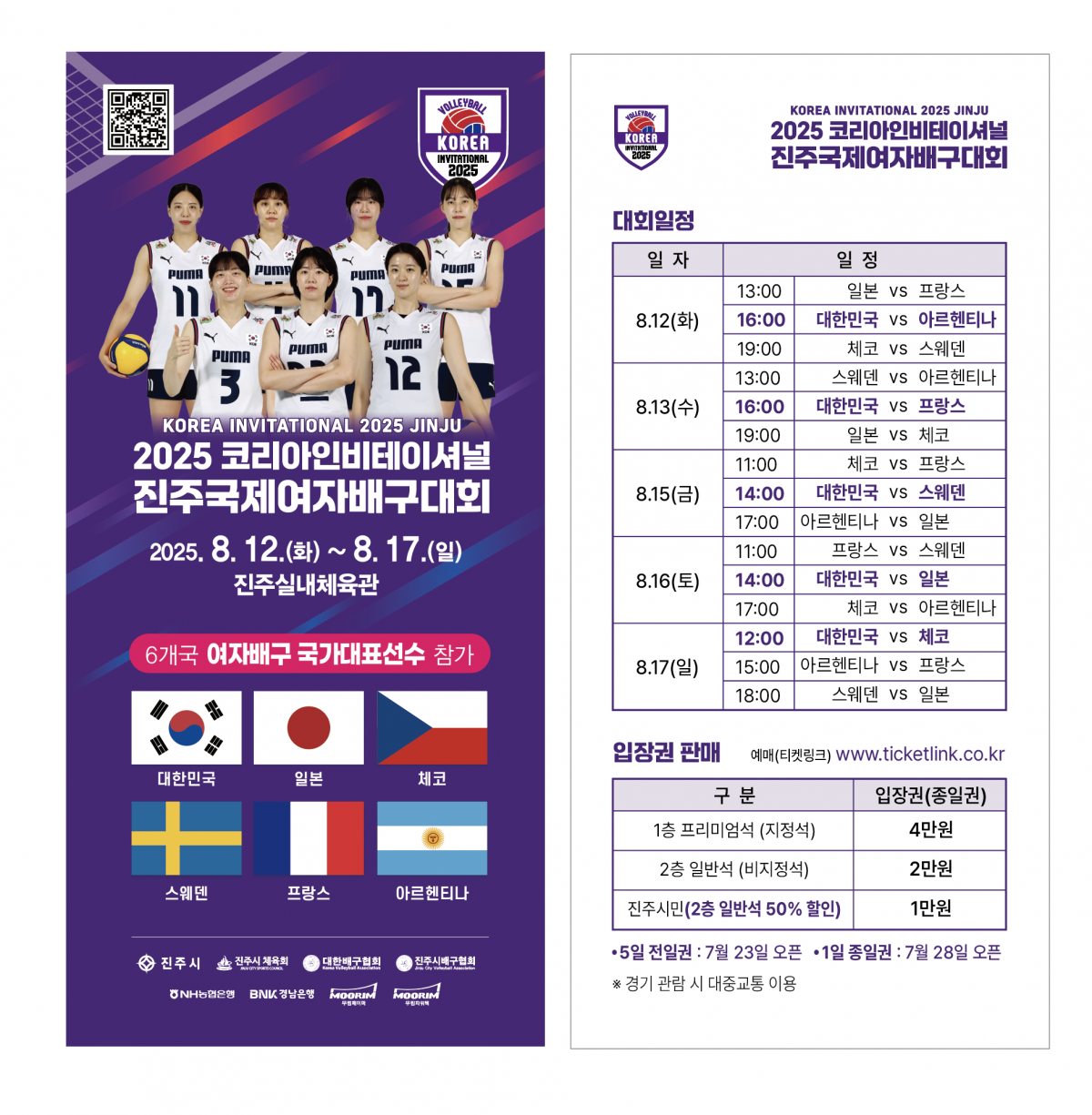 "2025년 코리이 인비테이셔널 진주 국제여자배구대회"가 8월 12일부터 17일까지 진주실내체육관(초전동)에서 개최됩니다.