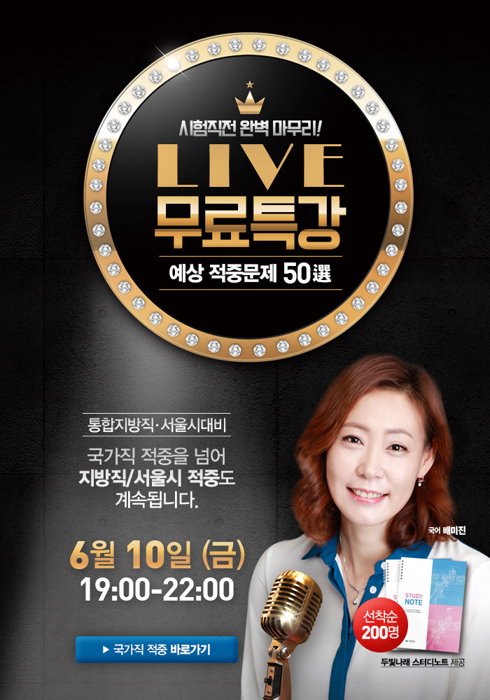 [LIVE 무료특강] 지방직/서울시대비 마무리 특강 작성시간16.05.26|조회수86 목록 댓글 0 글자크기 작게가 글자크기 크게가 다음검색 현재 게시글 추가 기능 열기 북마크 신고 센터로 신고 댓글 댓글 0 댓글쓰기 답글쓰기 댓글 리스트