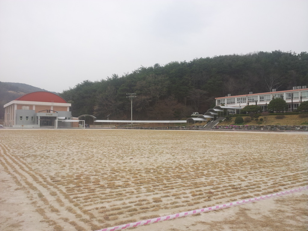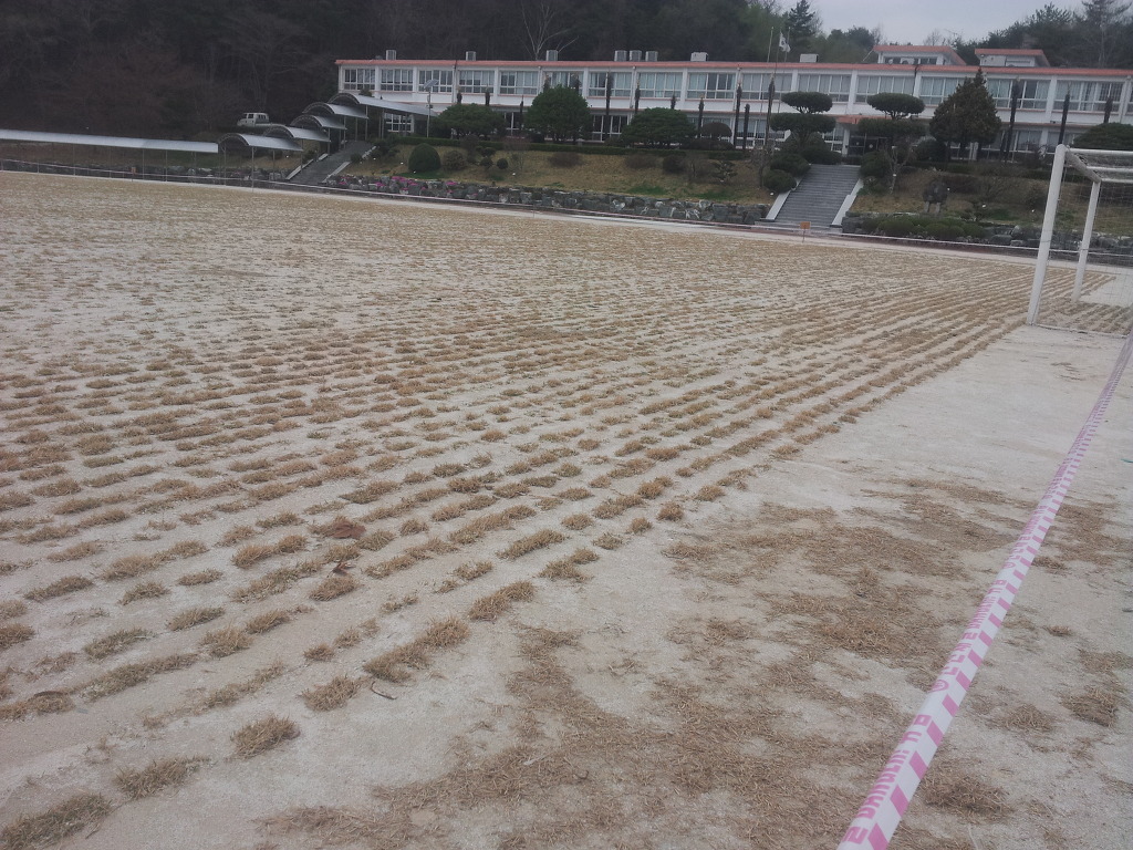 진서중학교 운동장에 천연잔디를 심엇습니다