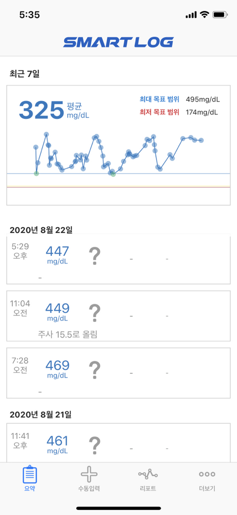 당이 널뛰다가 지금은 안정적이고 지금은