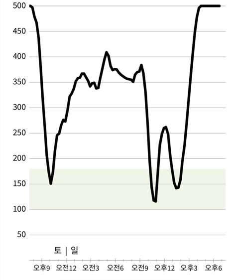 거의 240이 넘고 2시간 후면 350