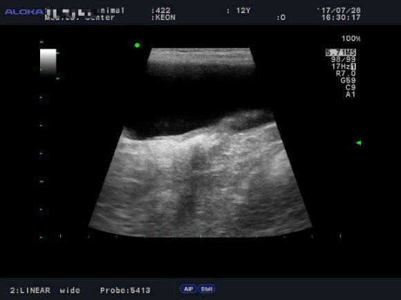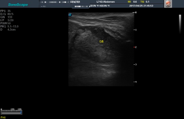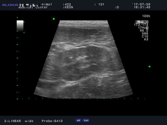 초음파상 하얗게 뒤덮여서 슬러지가 가득차있는 모습이었다가