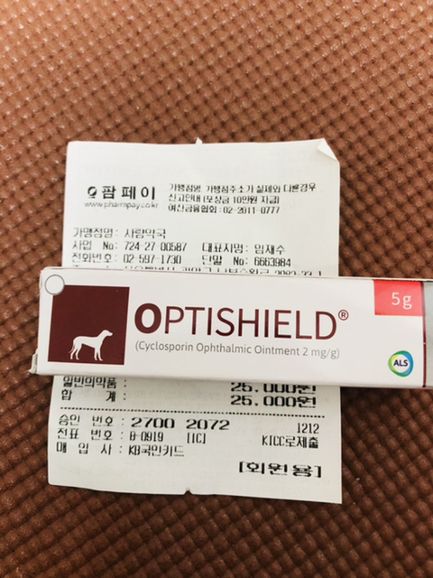 안녕하세요. 저희 강아지는 당뇨 백내장으로 실명 후 눈이 계속 충혈되는 결막염때문에 옵티실드라는 안연고 사용 중인데요.