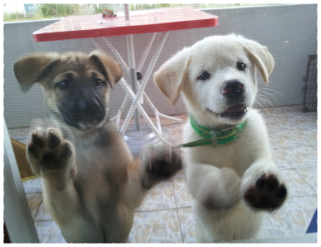 오늘아침에 텃밭에 상추를 아작내어버린 범인이 보리&쌀입니다!!