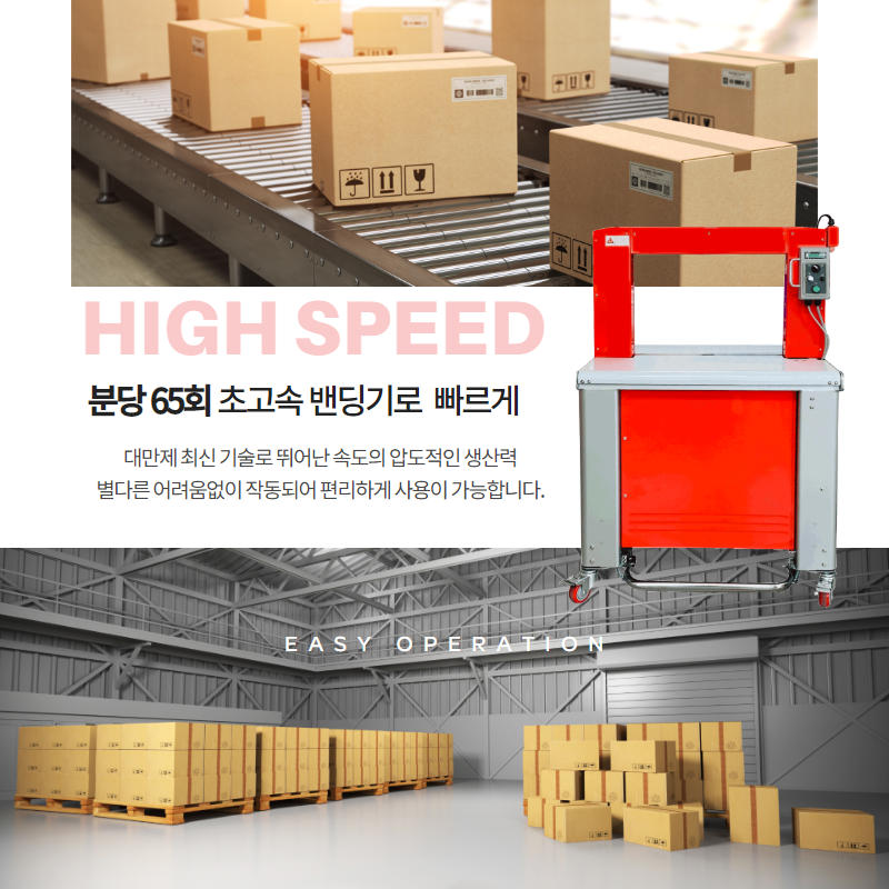 이런 요구에 부응한 분당 65회의 속도를 자랑하는 대만제 고속형밴딩기 소개합니다.