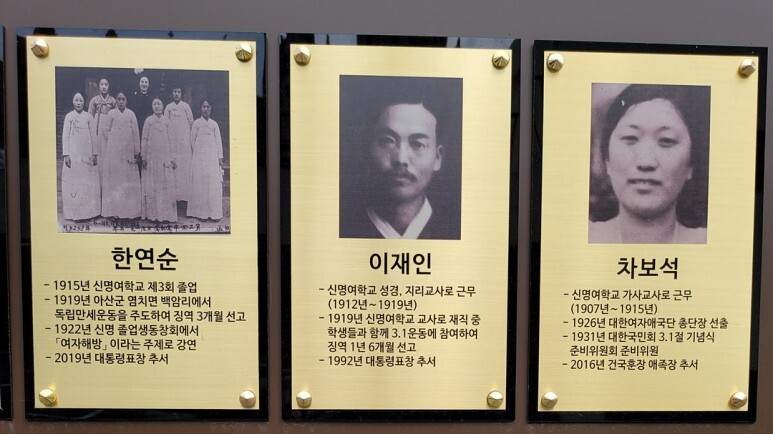 1919년 3.8운동 당시 이재인 교사 등이 만세운동을 주도하기도 했는데 나라를 되찾자는 운동에 어찌 남녀가 따로 있을 수 있으랴. 학교를 미리 방문하여 3.8독립운동기념탑을 참배하겠다고 전언하여 성사가 되었다. 이 기념탑은 학교에 세운 최최의 기념탑이라고 한다. 자세한 내용은 별첨 사진을 참고하시기 바랍니다.