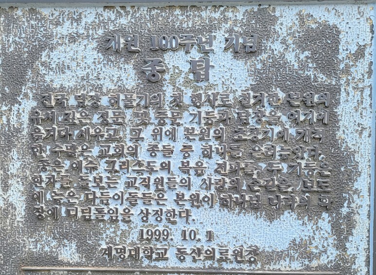 <동산의료원의 담장허물기 때 옮겨온 종>