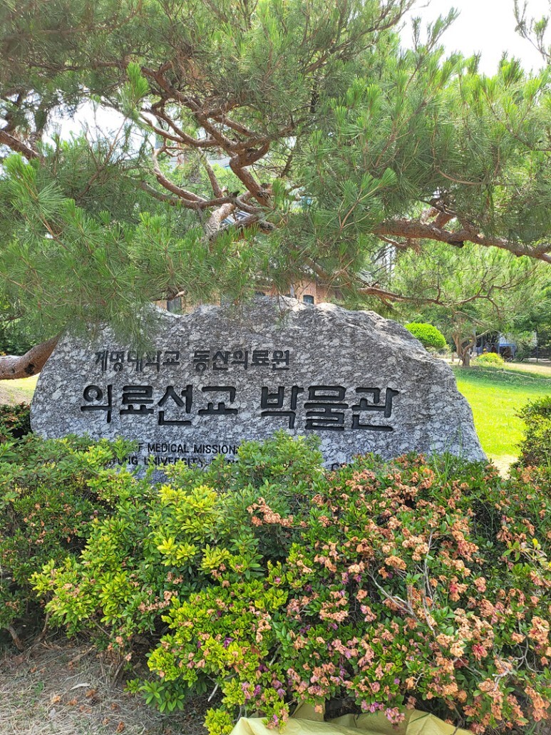동산병원 구관(등록문화재 제15호)으로 옮긴다.고풍스런 붉은 벽돌집을 기리키는데 건물q벽에 설치한 'sinse1899'는 동산병원이 최초로 문을 연 해를 가리키며 건물을 지은 해가 아니다.