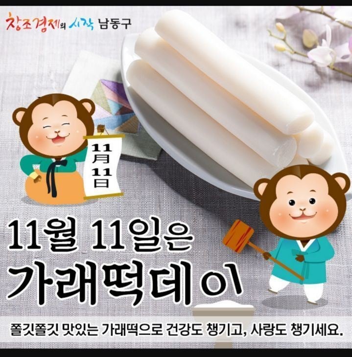 쌀의 소비를 높이고 농업인의 노고를 격려하기 위해 2000년을 전후하여 민간업체에서 판매하는 막대기 모양의 과자가 11월 11일을 기해 선풍적인 인기를 끌면서 판매되자, 이에 대한 대응으로 몇몇 기관과 회사에서 모양이 비슷한 가래떡을 같은 날 소비하자는 ‘가래떡데이’ 운동을 펼치기 시작했다. 농림축산식품부에서 이 아이디어를 수용, 2006년 ‘농업인의 날’ 행사의 일환으로 11월 11일을 ‘가래떡데이’로 지정했다.
