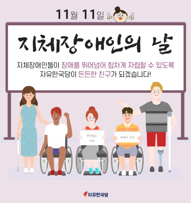 지체장애인들에 대한 권익을 보호하고 격려와 관심을 촉구하기 위해 지정되었다. 11월 11일을 택한 까닭은 숫자 ‘1’처럼 힘차게 일어서자는 의미이다.