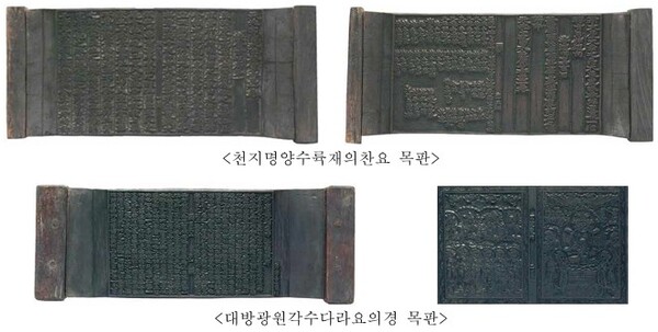 ▲1588년 제작된 「대방광원각수다라요의경 목판」 ▲「법집별행록절요병입사기 목판」