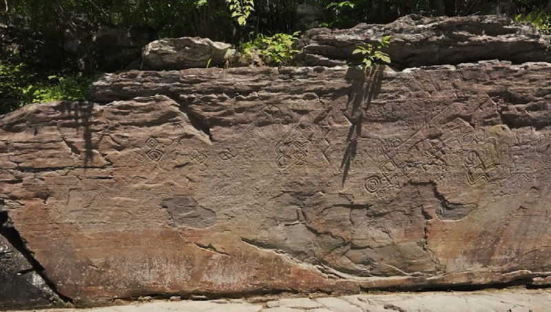 3. 대곡리 암각화로부터 약 2km 떨어진 천전리 명문과 암각화에는 선사시대부터 신라시대에 이르는 여러 생활상이 담겼다. 높이 약 2.7m, 너비 9.8m 바위에 각종 기하무늬와 기마 인물, 동물 등 그림 620여 점이 새겨졌다. 신라 법흥왕 일가가 남긴 명문도 포함돼 있어 사료적 가치가 높은 것으로 평가된다.